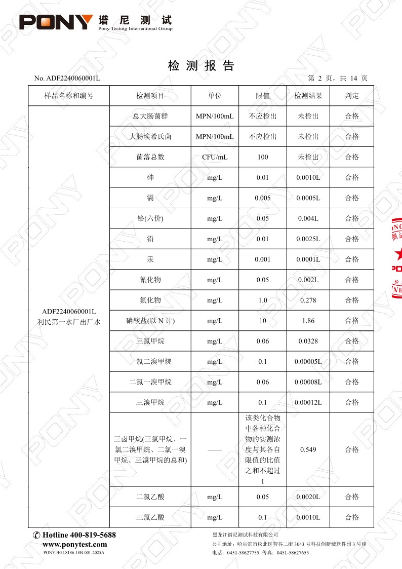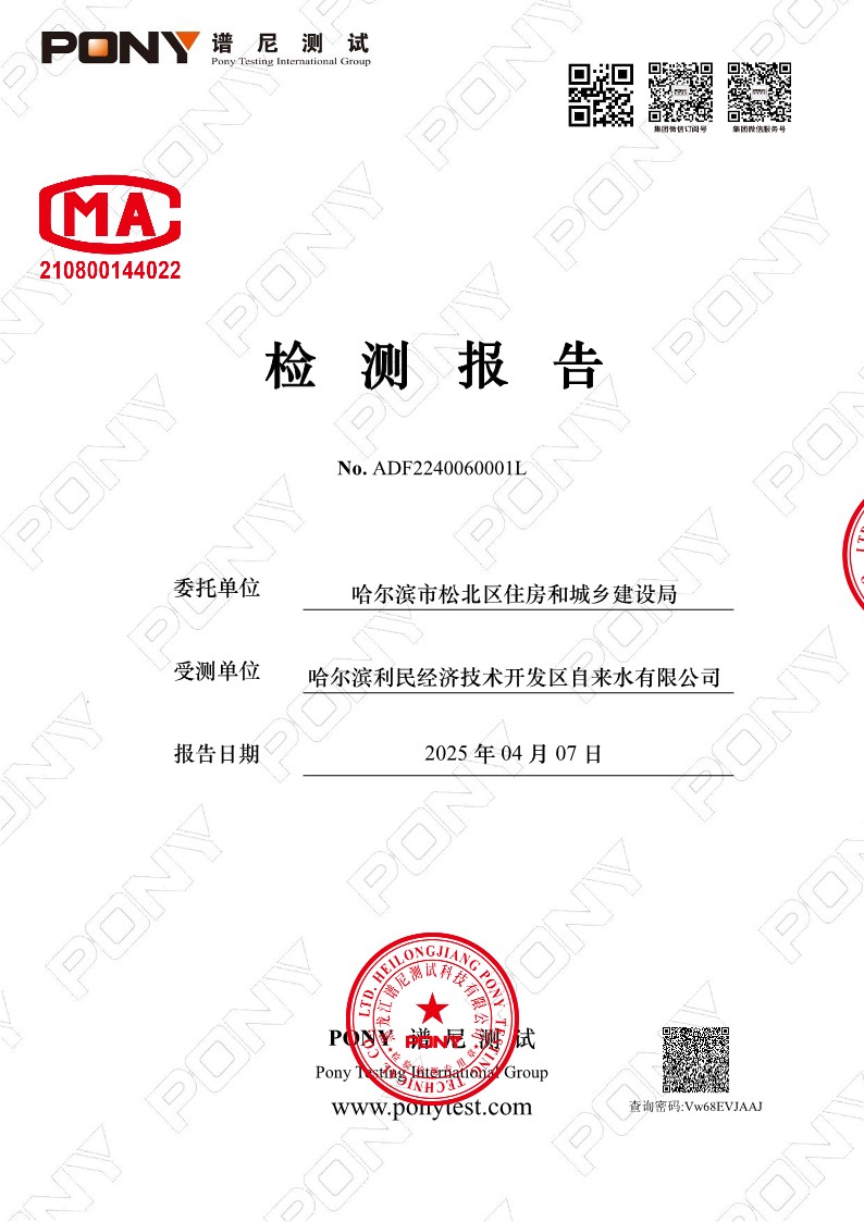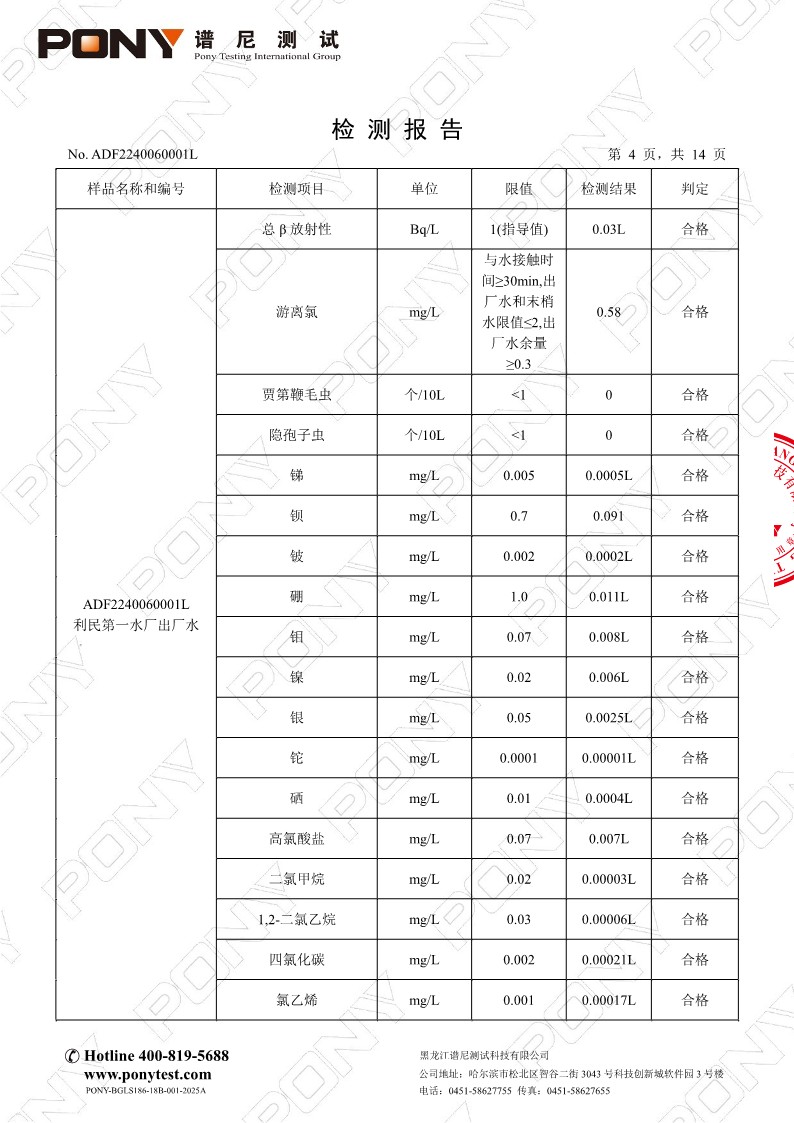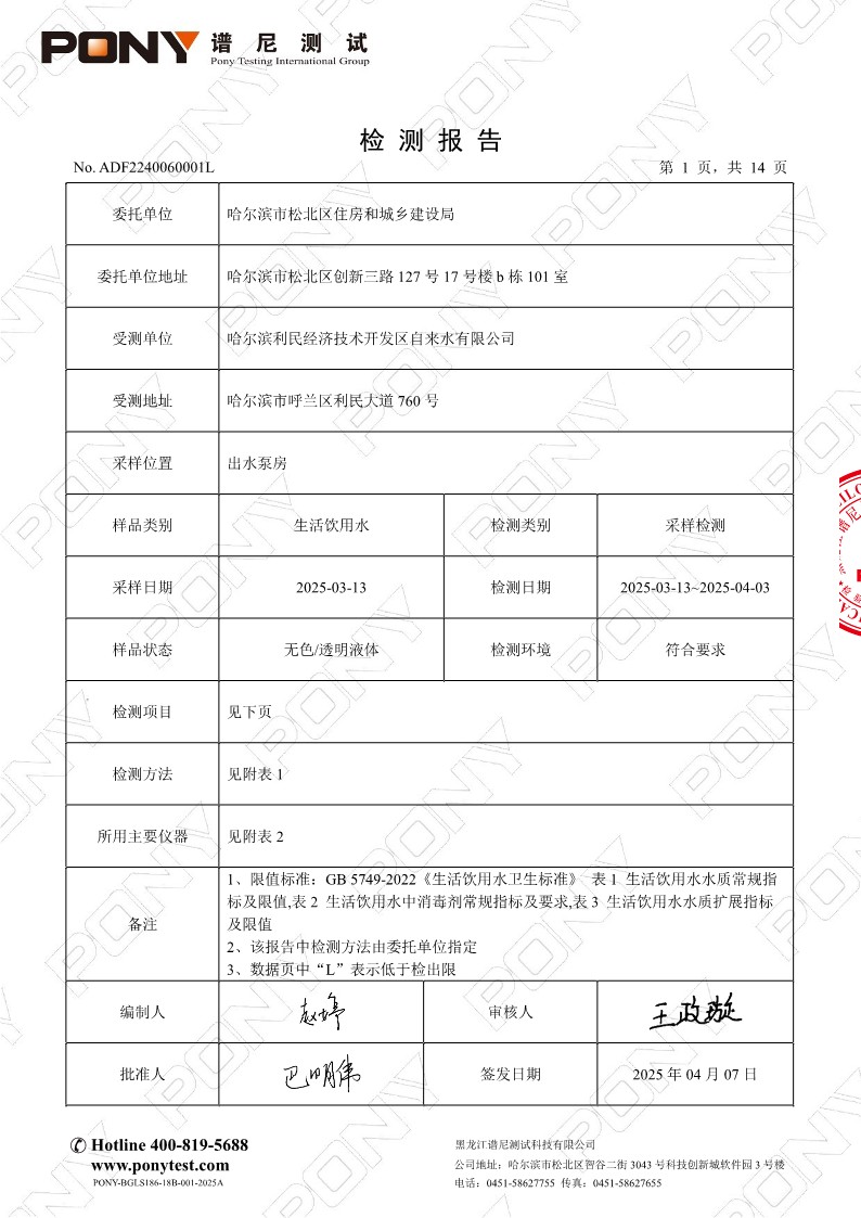 水質(zhì)檢測報告(利民開發(fā)區(qū)第一水廠)(報告日期2025年4月7日)