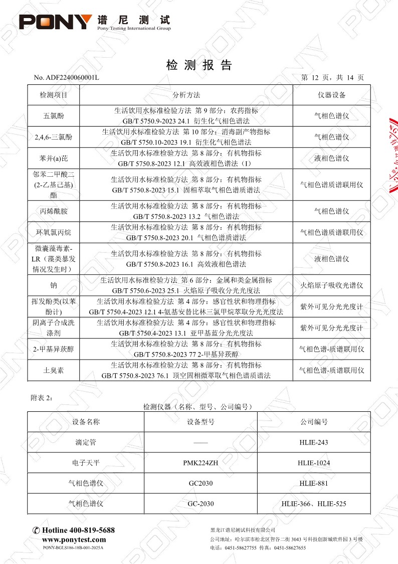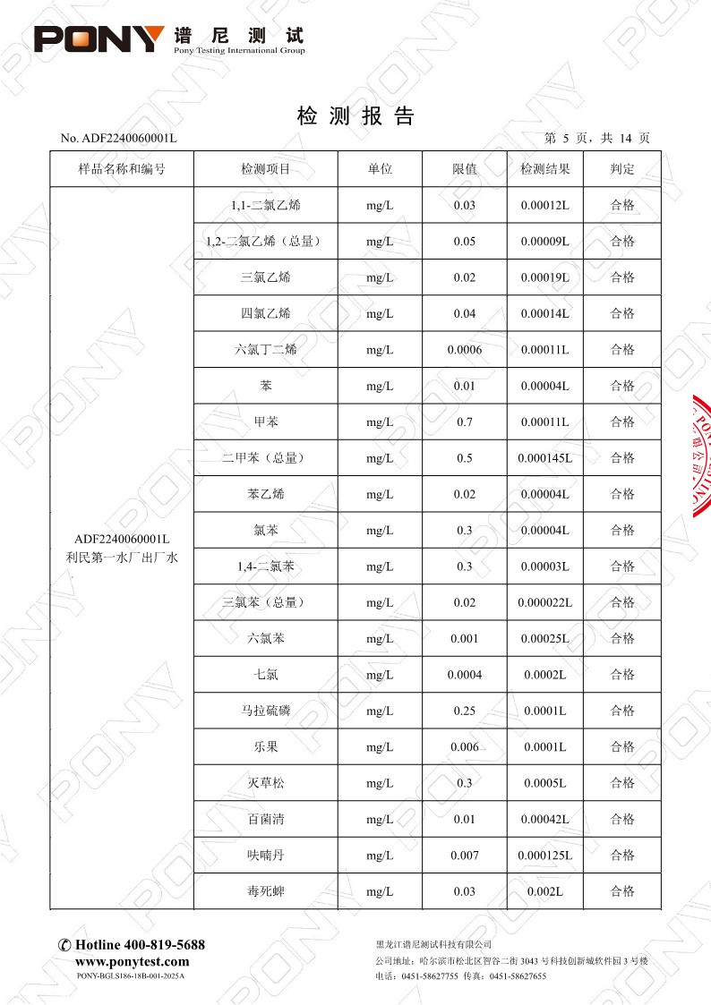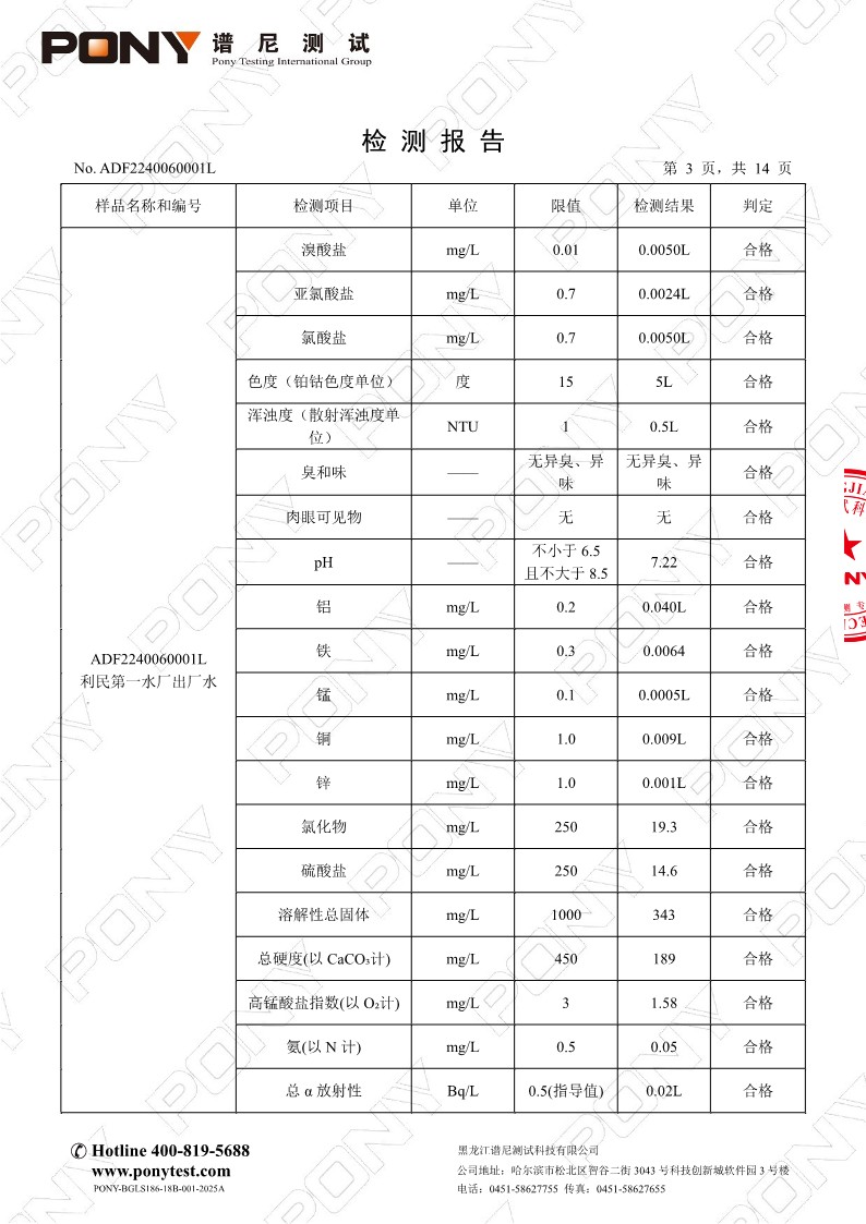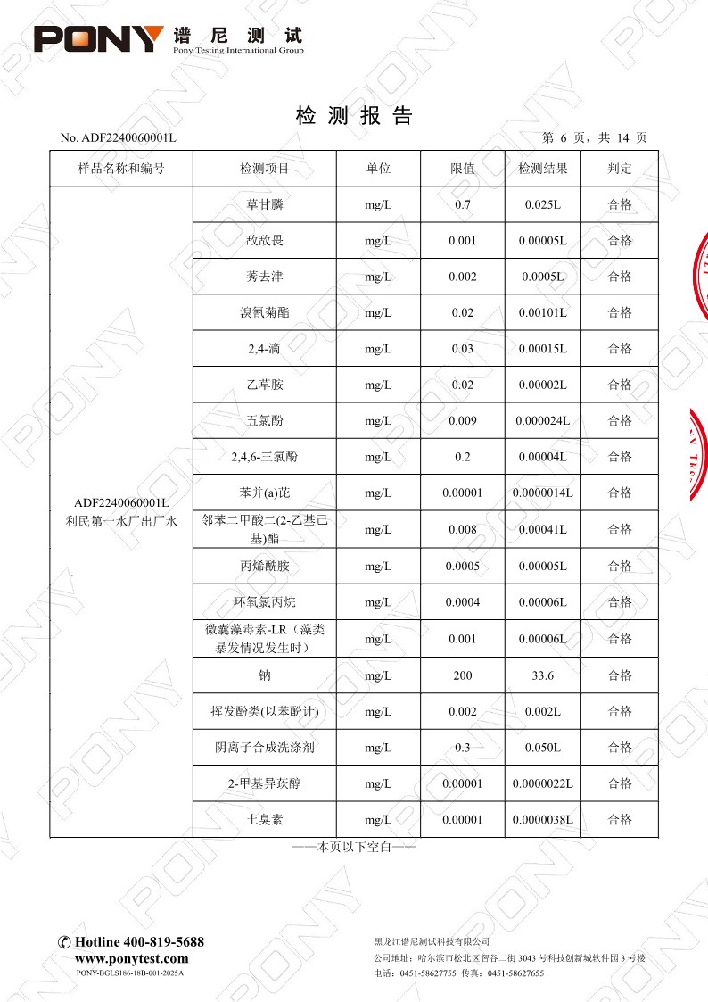 水質(zhì)檢測報告(利民開發(fā)區(qū)第一水廠)(報告日期2025年4月7日)