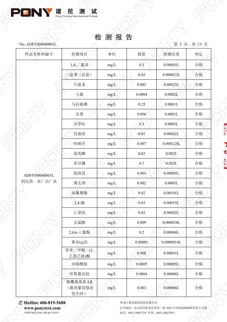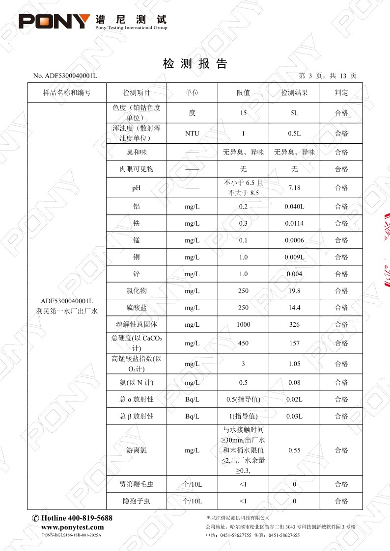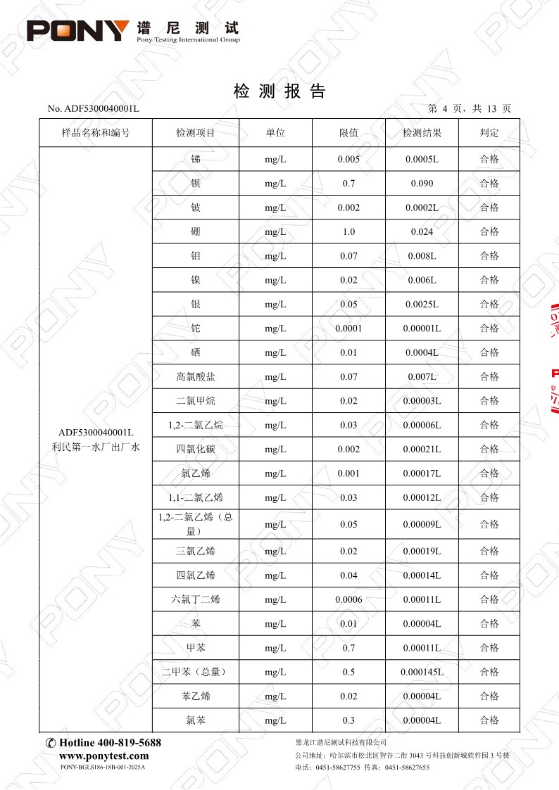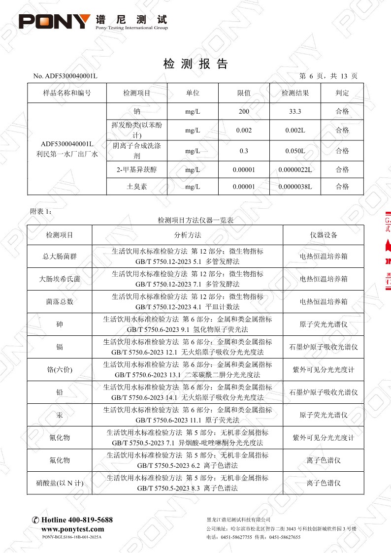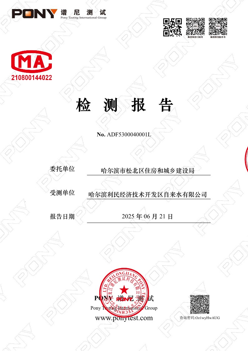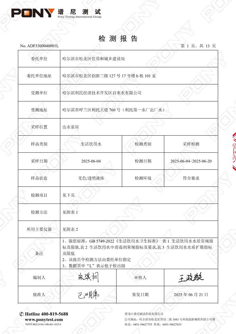 水質(zhì)檢測報告(利民開發(fā)區(qū)第一水廠)(報告日期2025年6月21日)